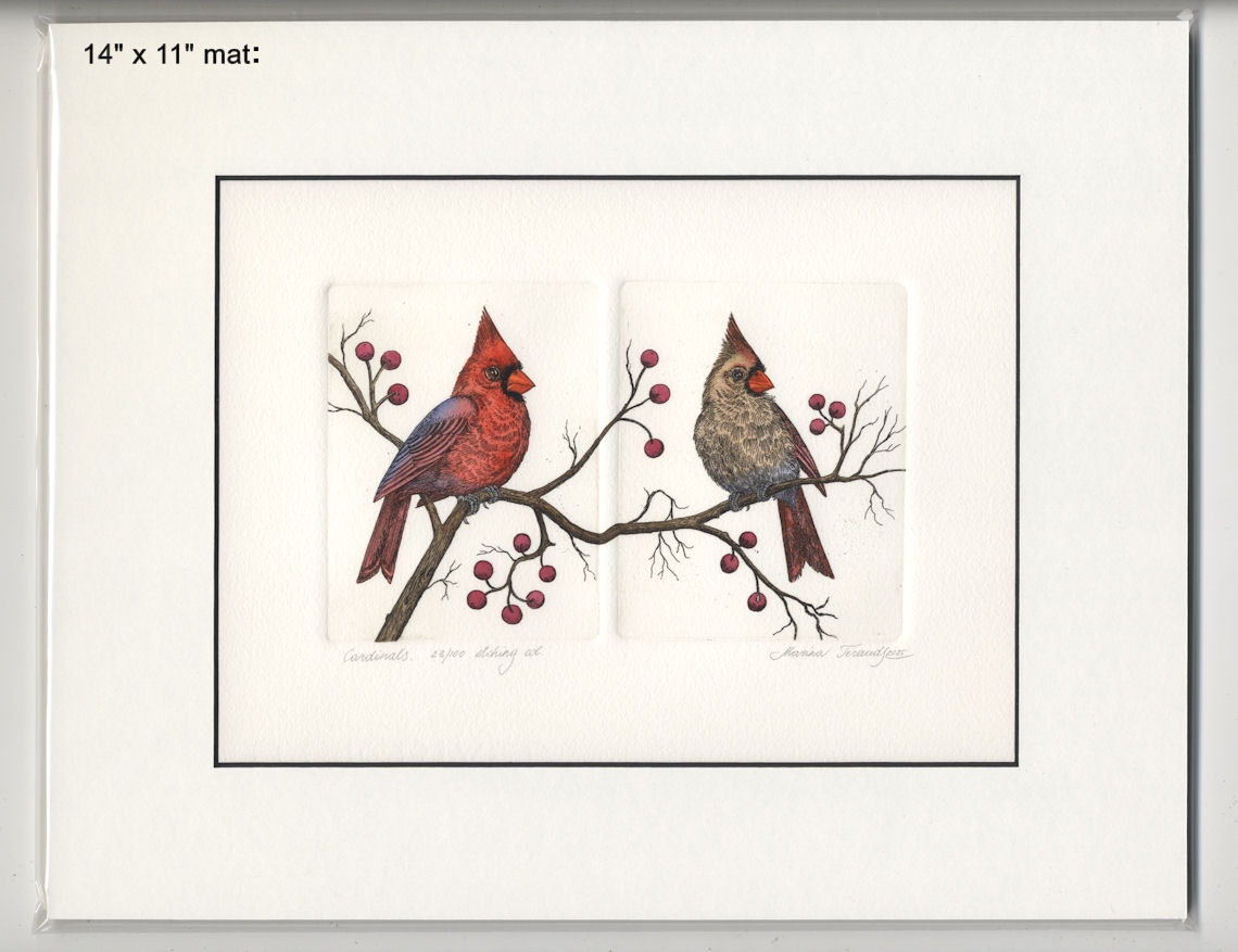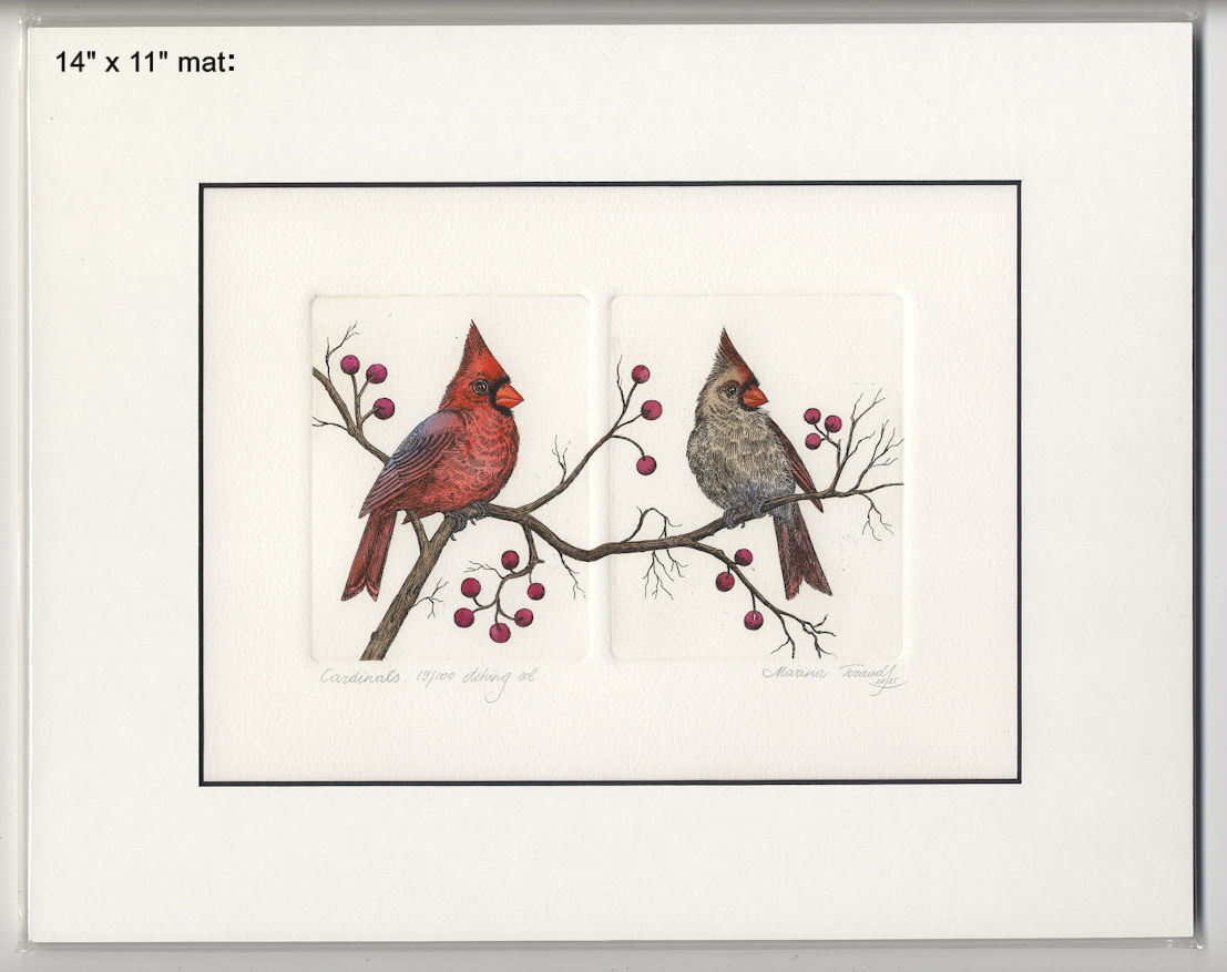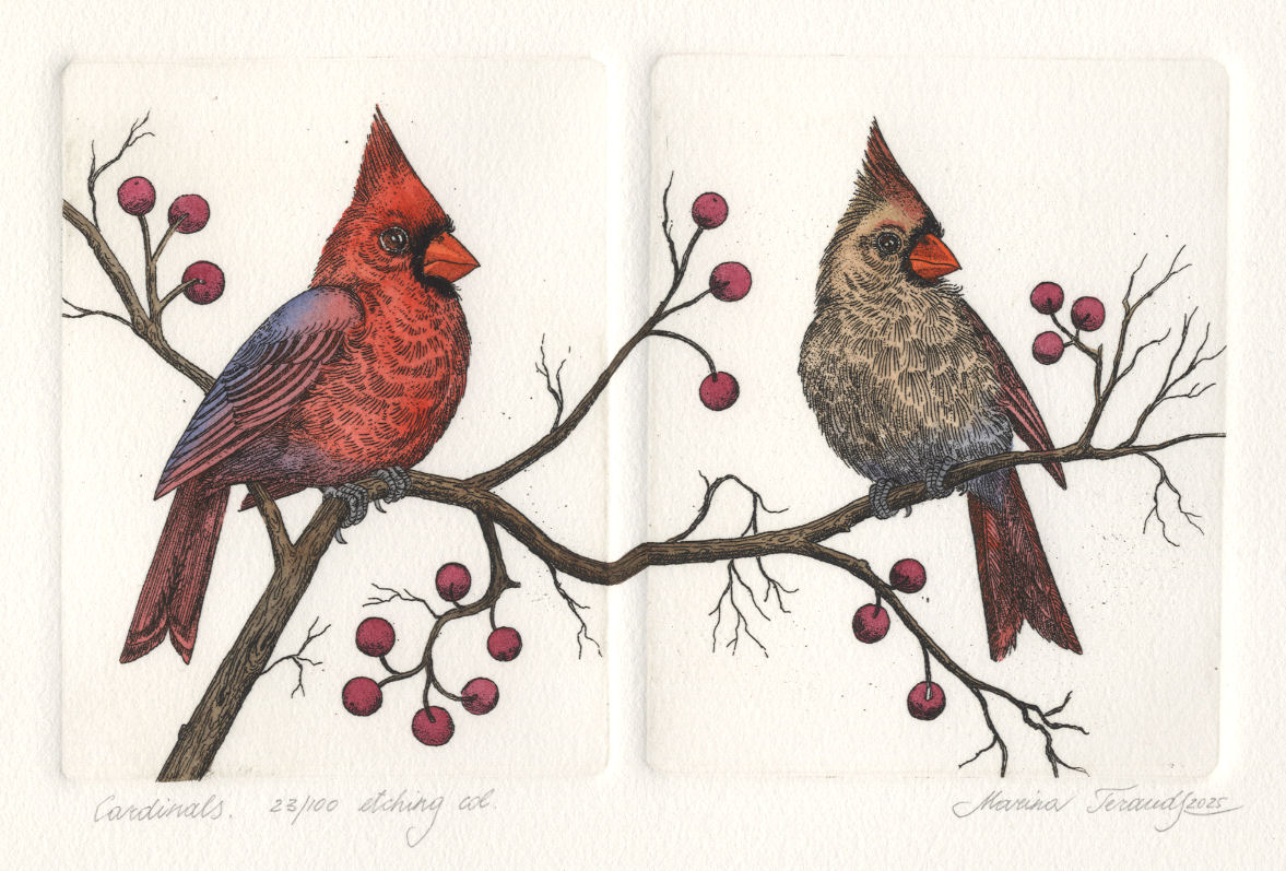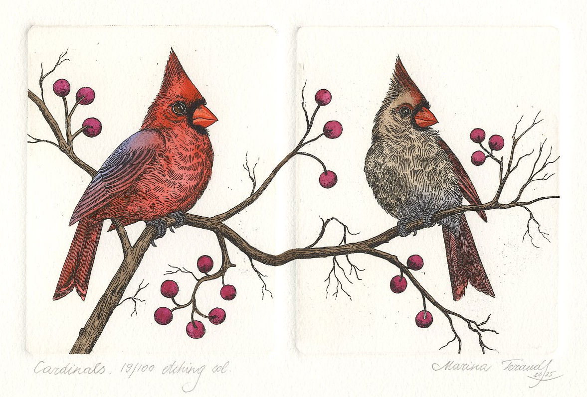 | Cardinals, handpulled original diptych etchings |