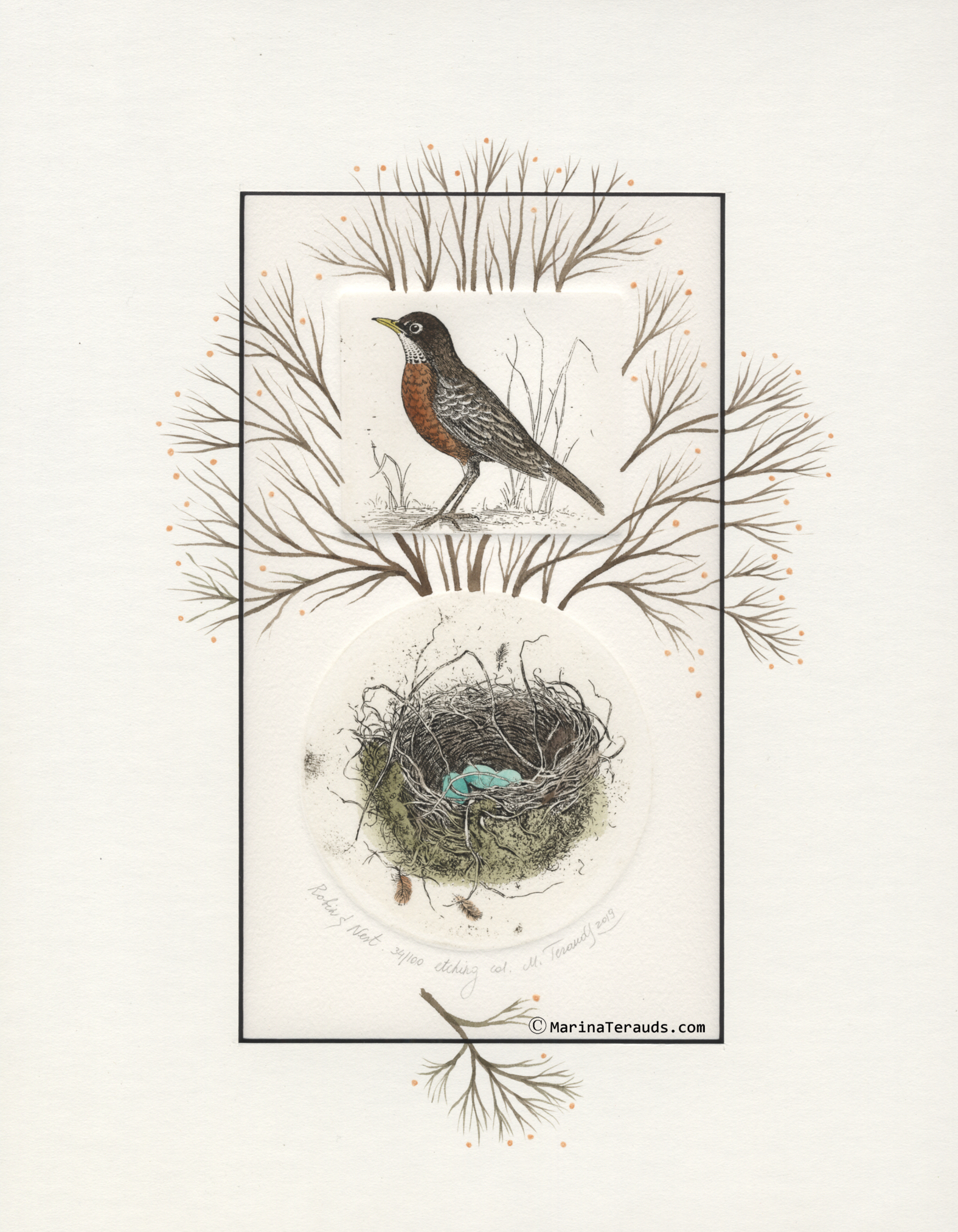 Robin & Nest, original etchings |