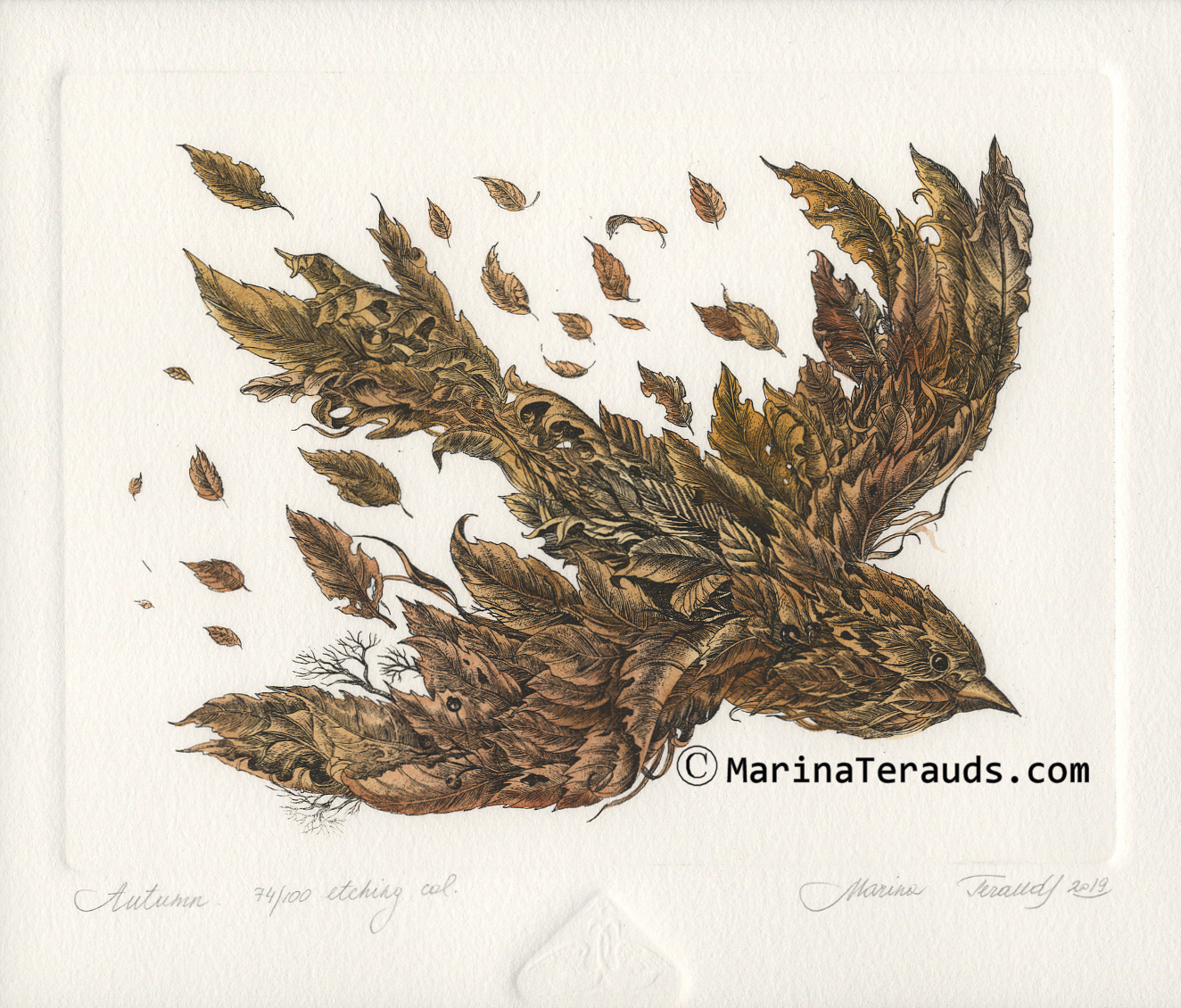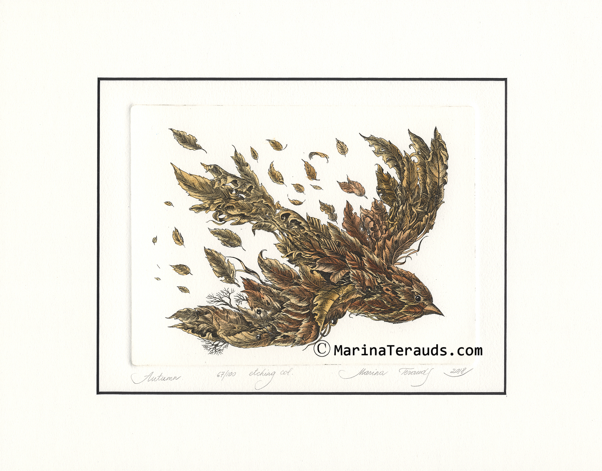 AUTUMN BIRD, original etchings |