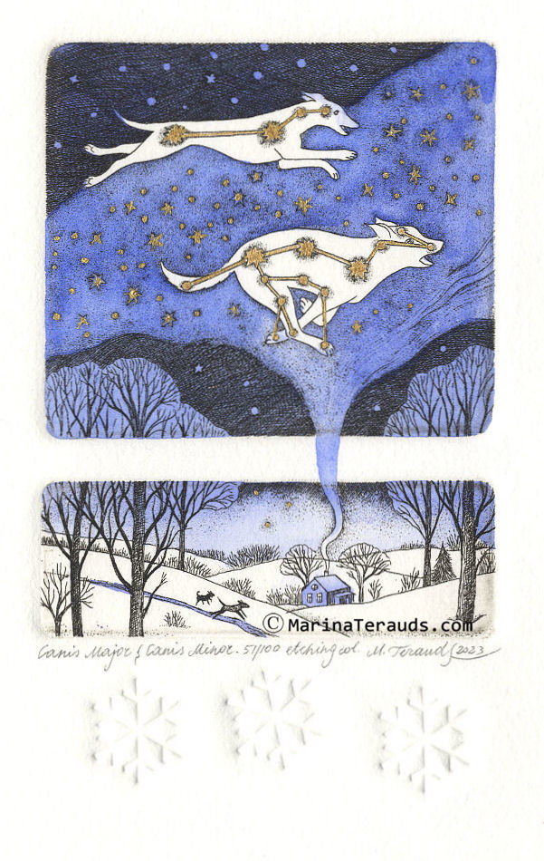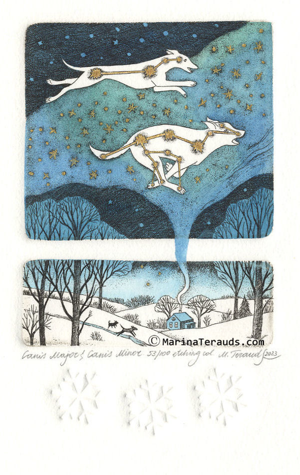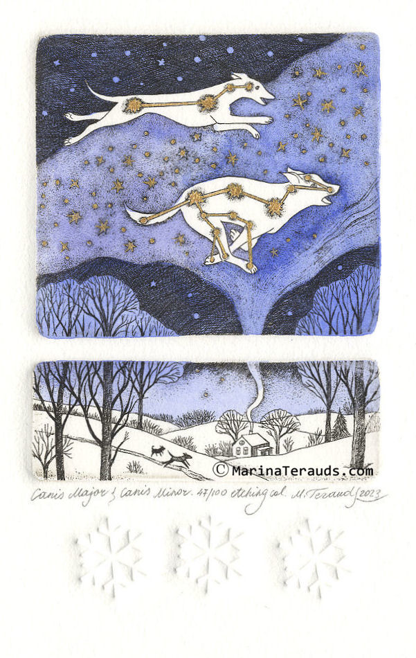 Canis Major & Canis Minor, original etchings |