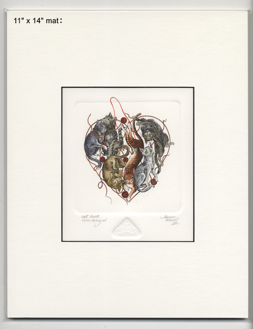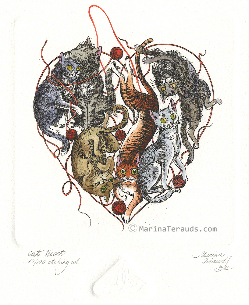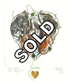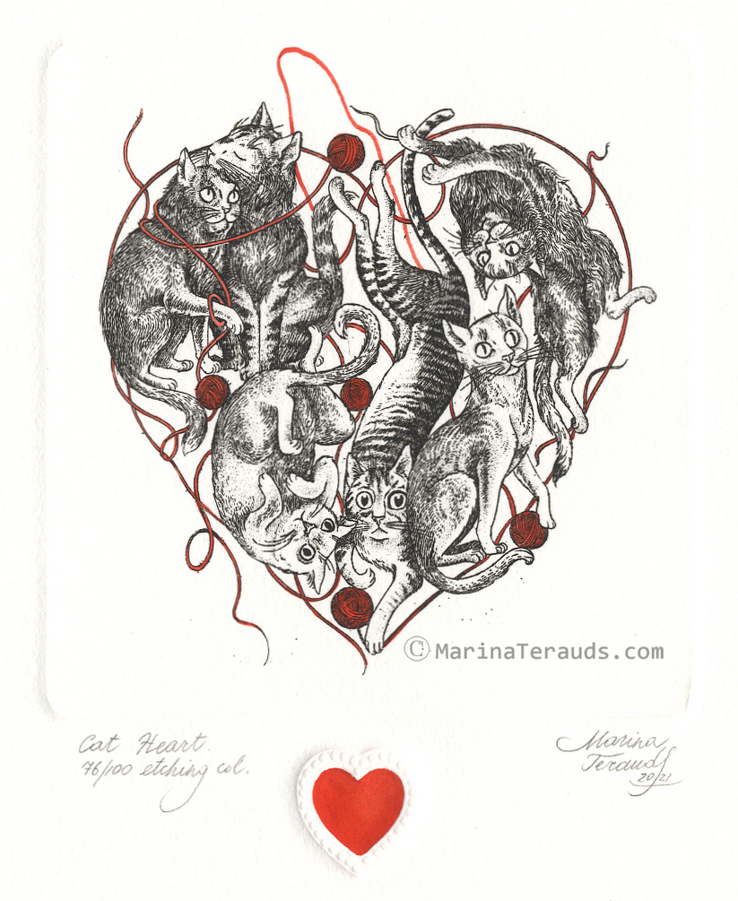 CAT HEART, orginal etchings |