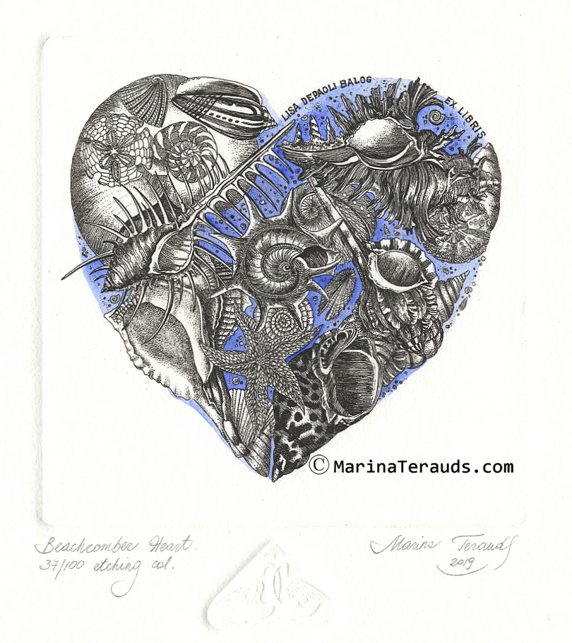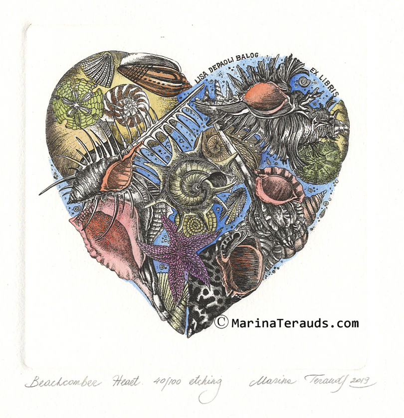 BEACHCOMBER HEART, original ex libris etchings |
