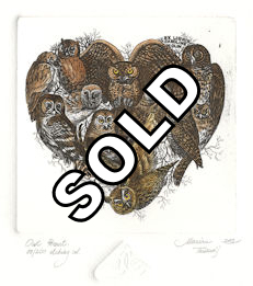 OWL HEART, original ex libris etchings |