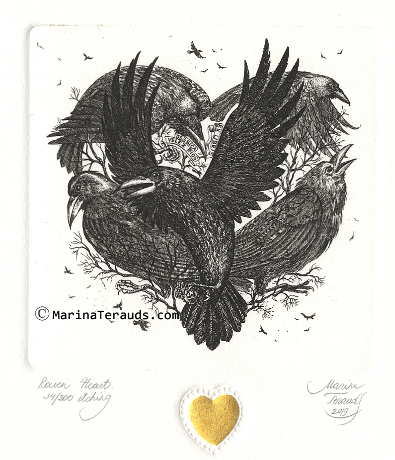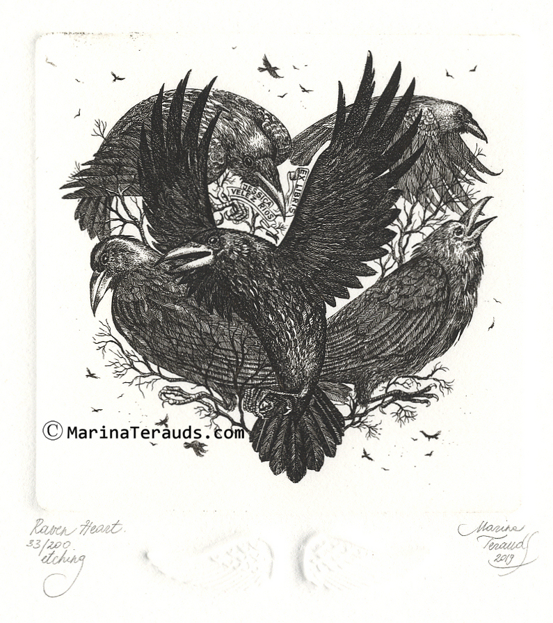 RAVEN'S HEART, original ex libris etchings |