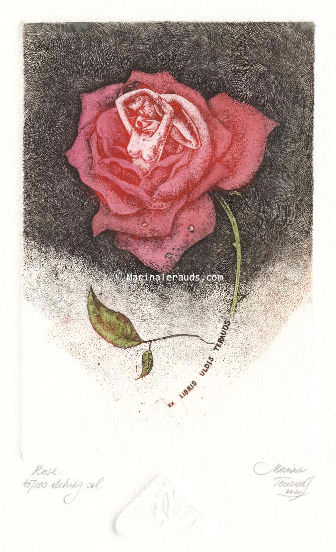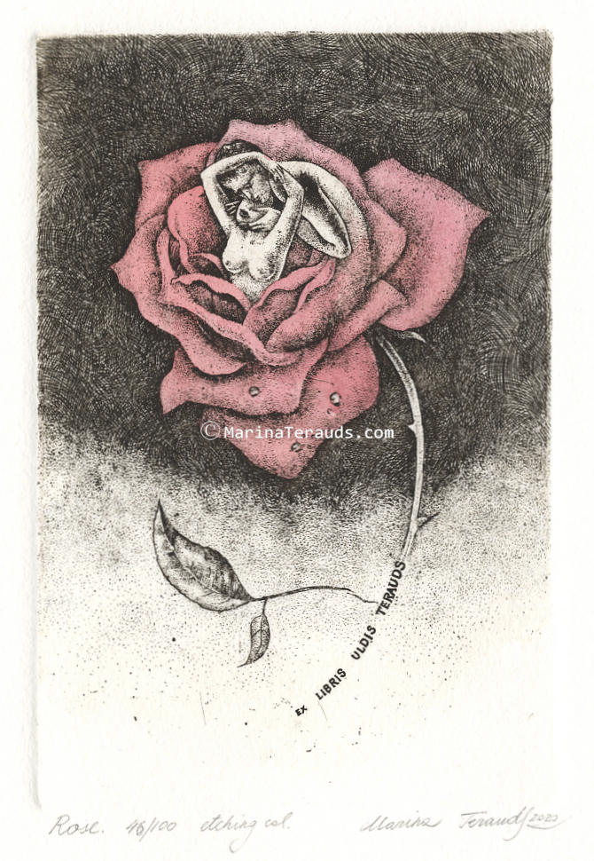 Rose, Ex Libris Uldis Terauds, original etchings |