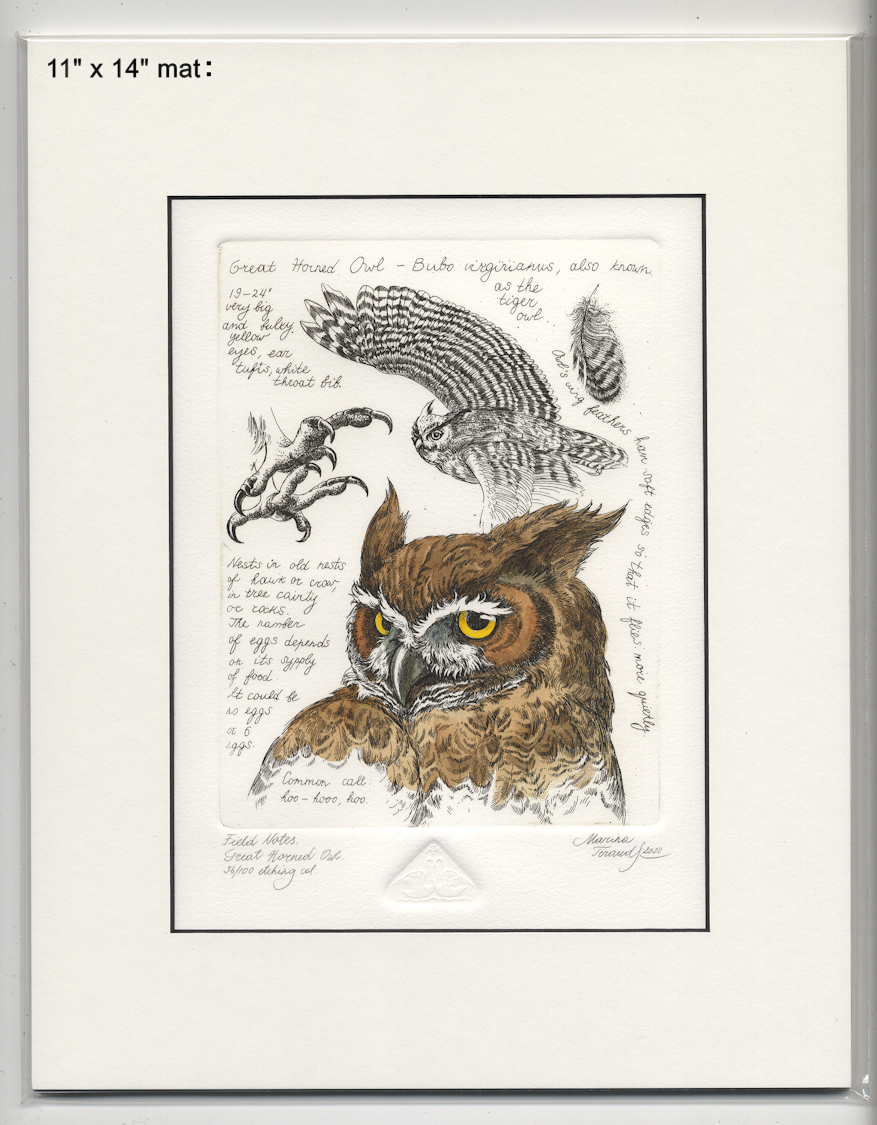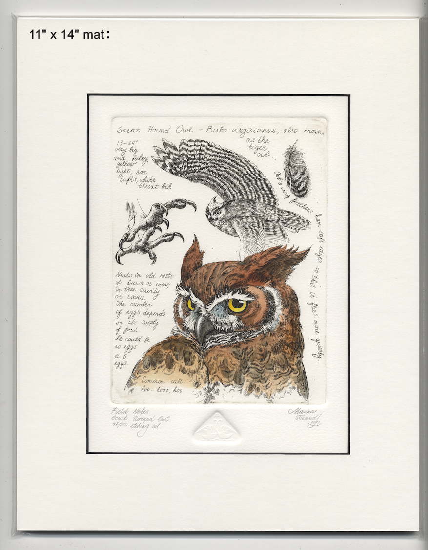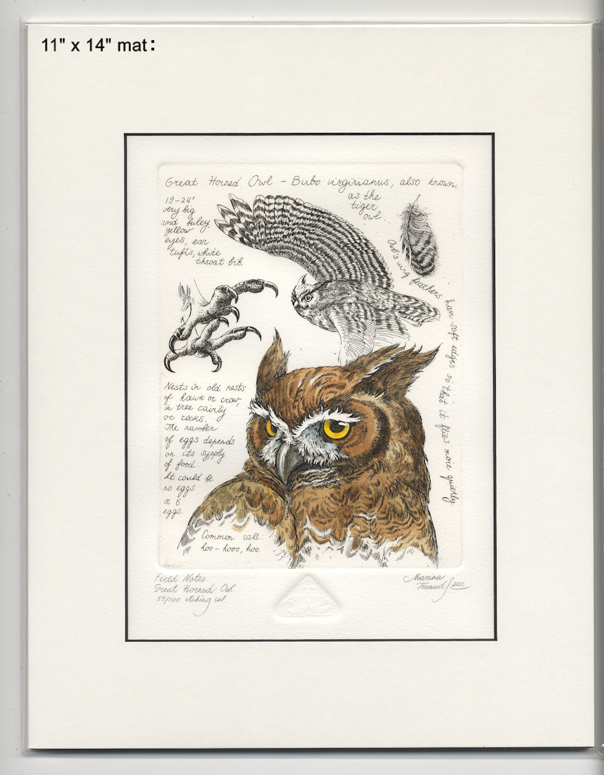 Field Notes, Great Horned Owl, original etchings |