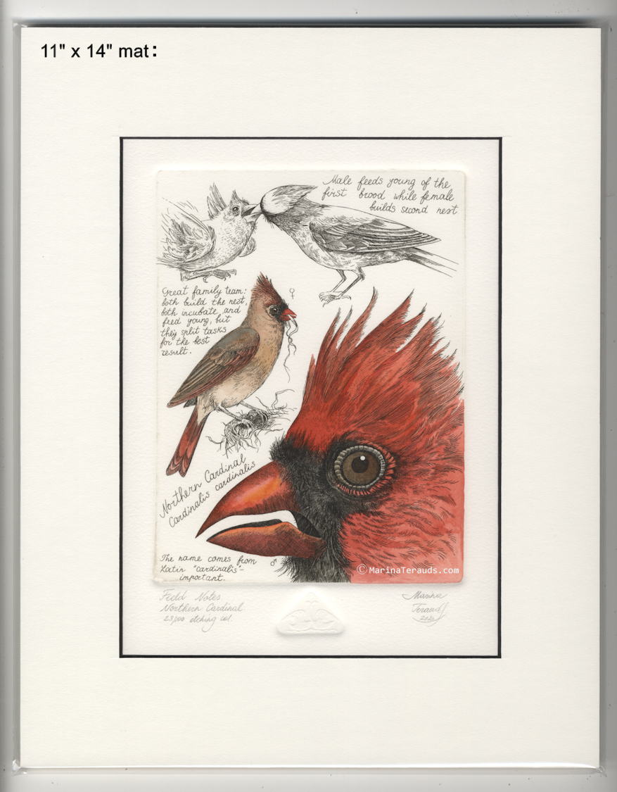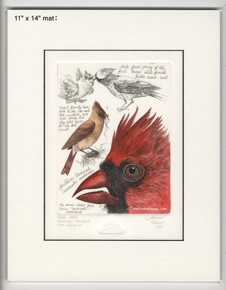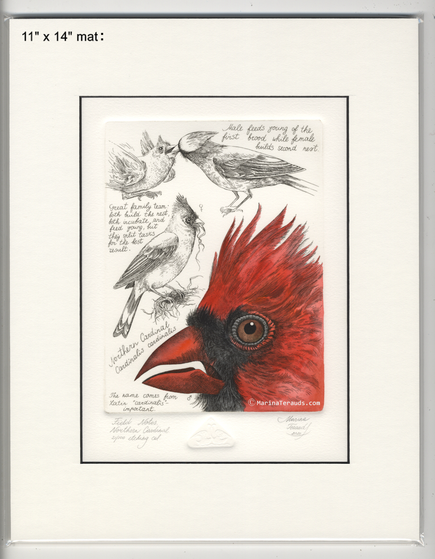 Field Notes, Northern Cardinal, original etchings |
