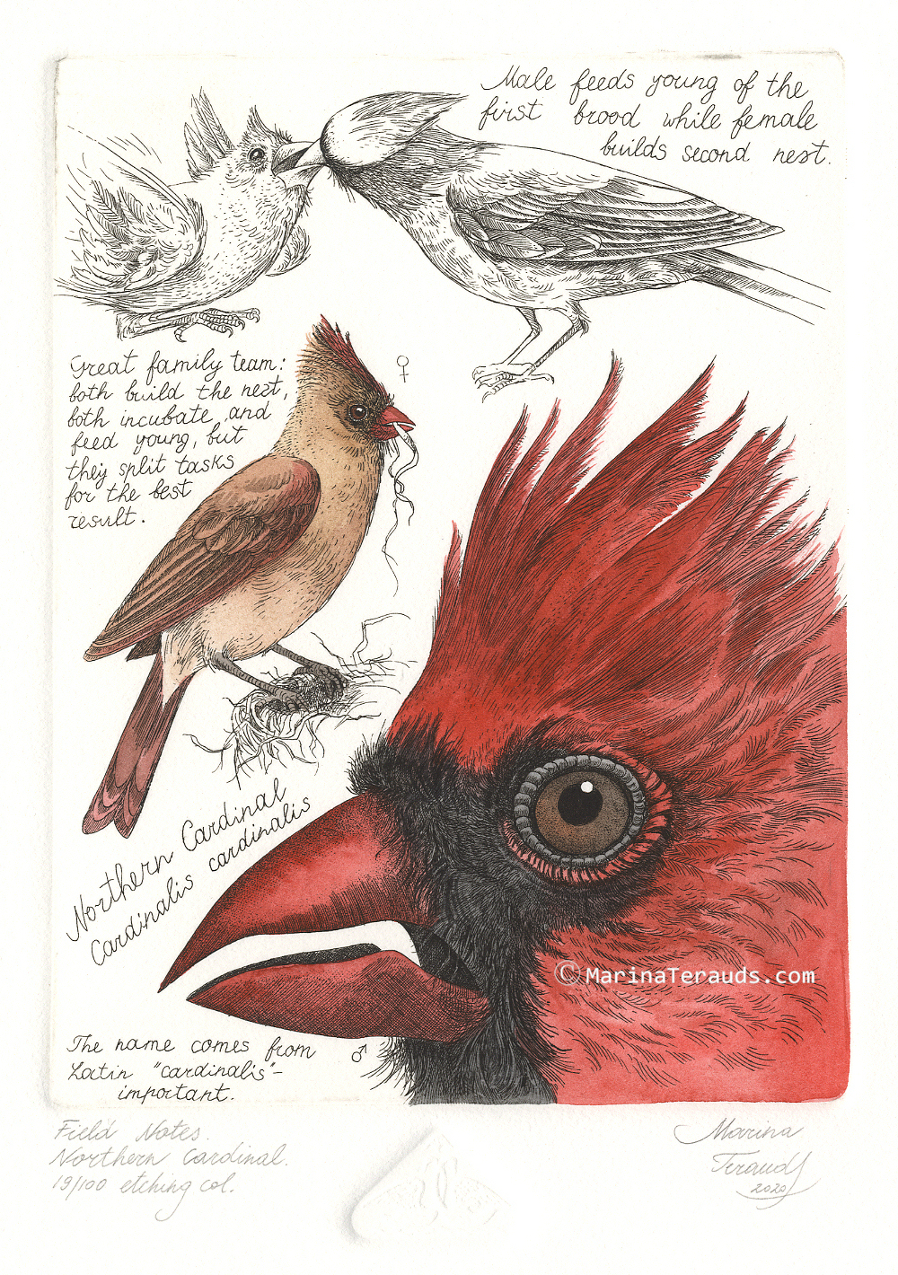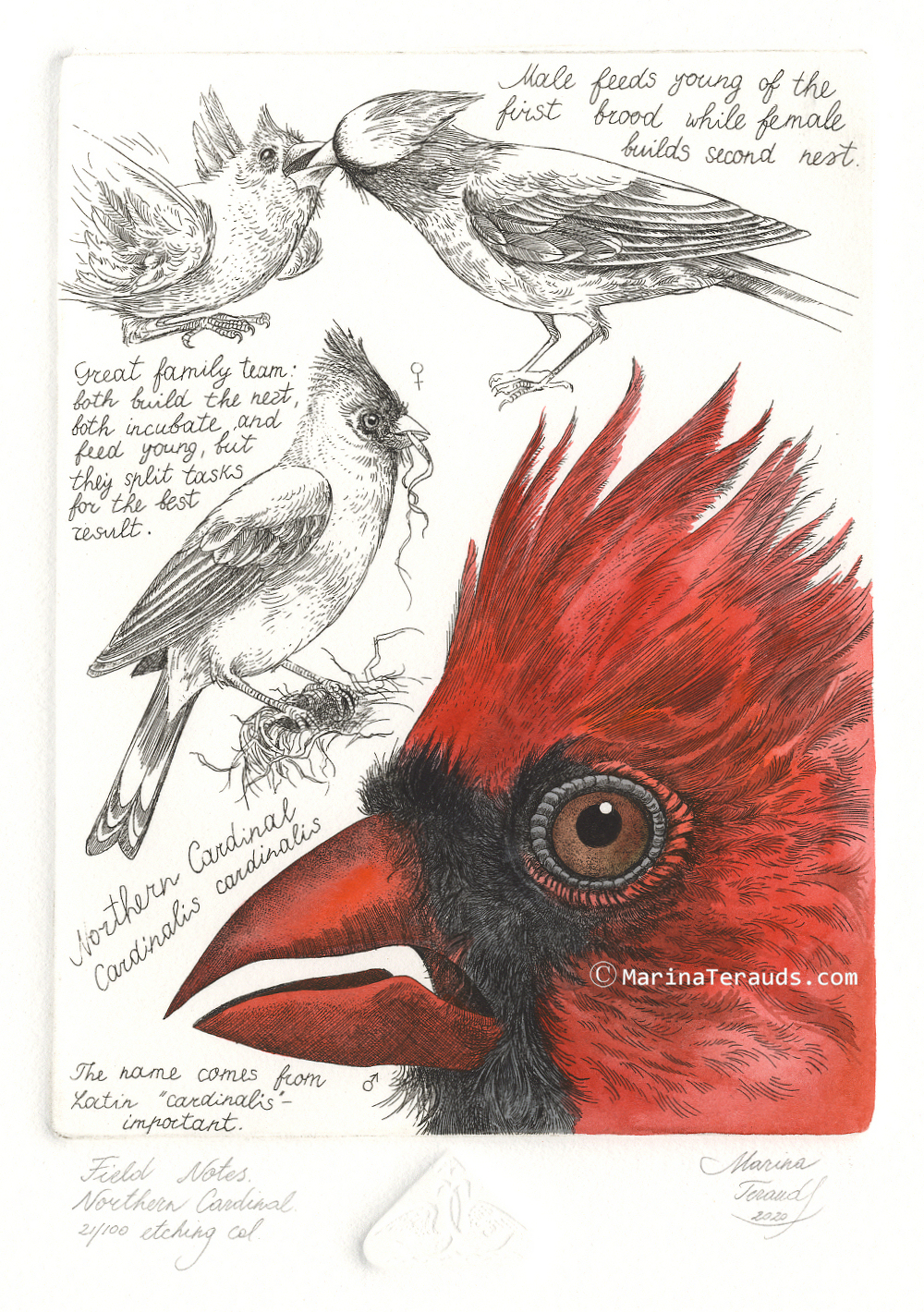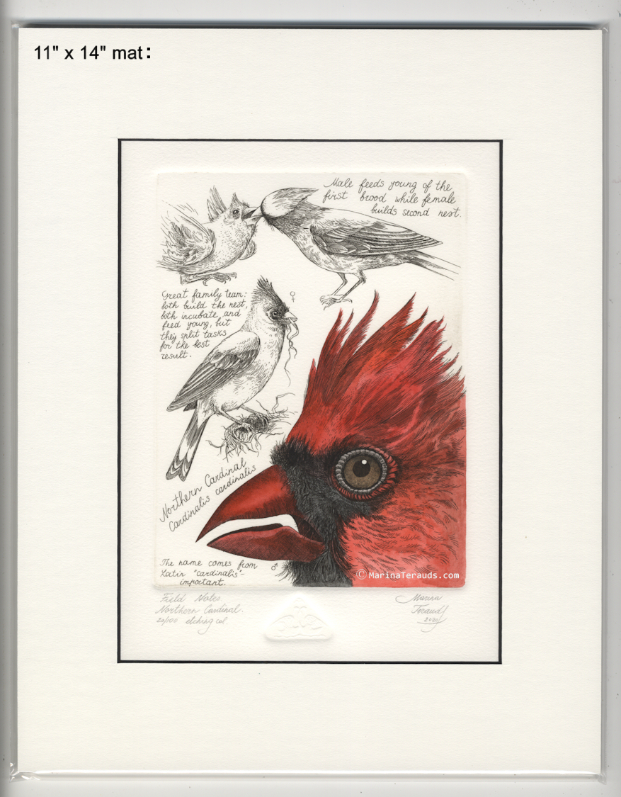 Field Notes, Northern Cardinal, original etchings |