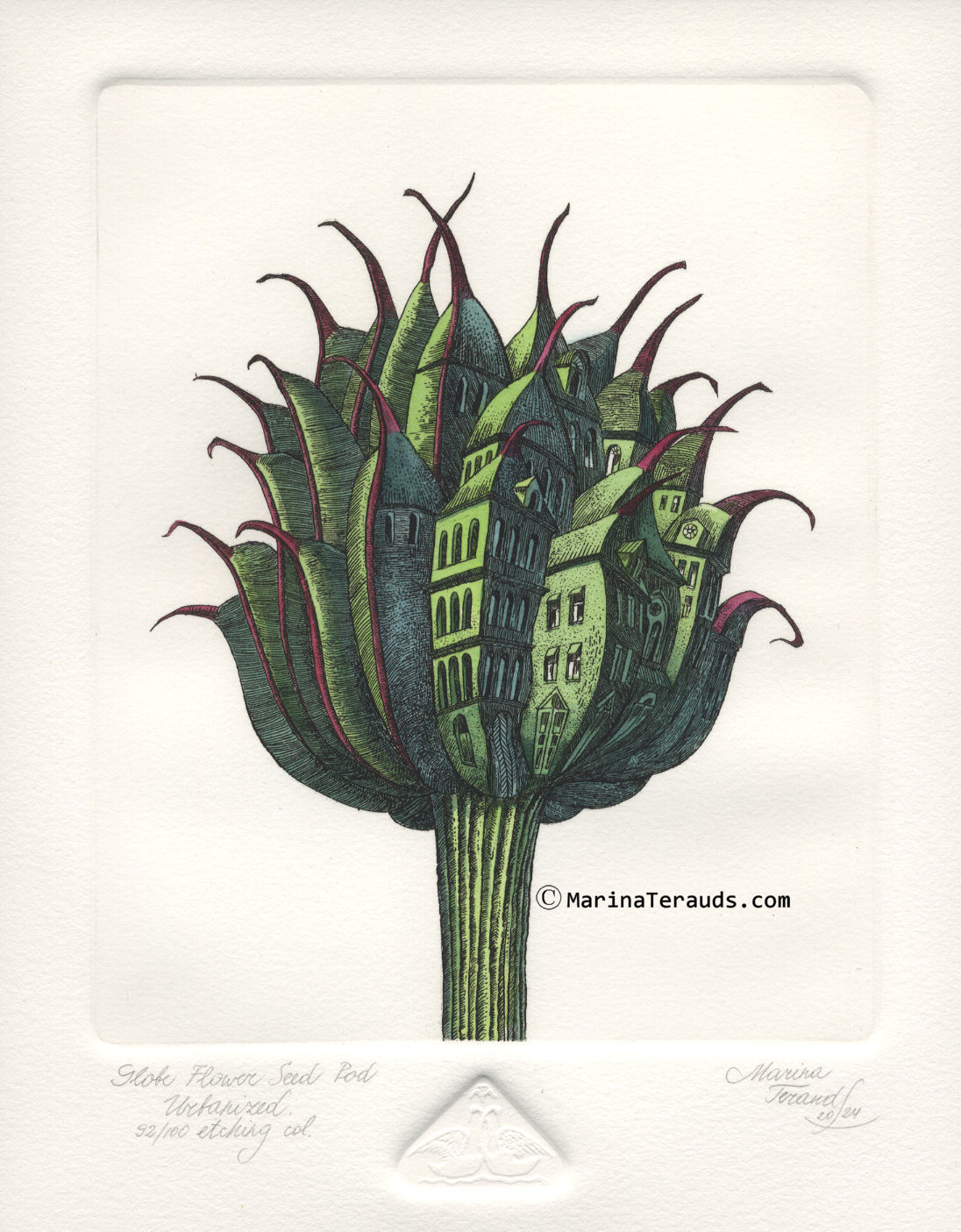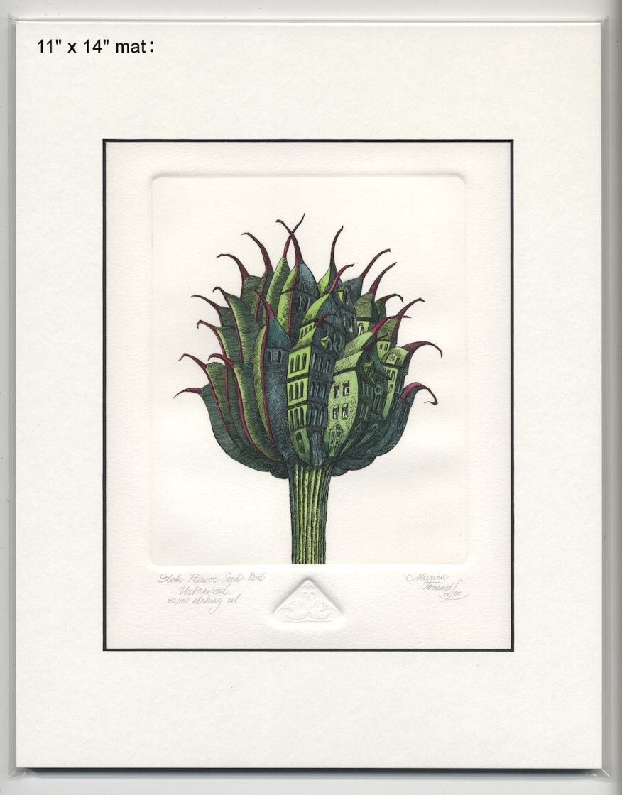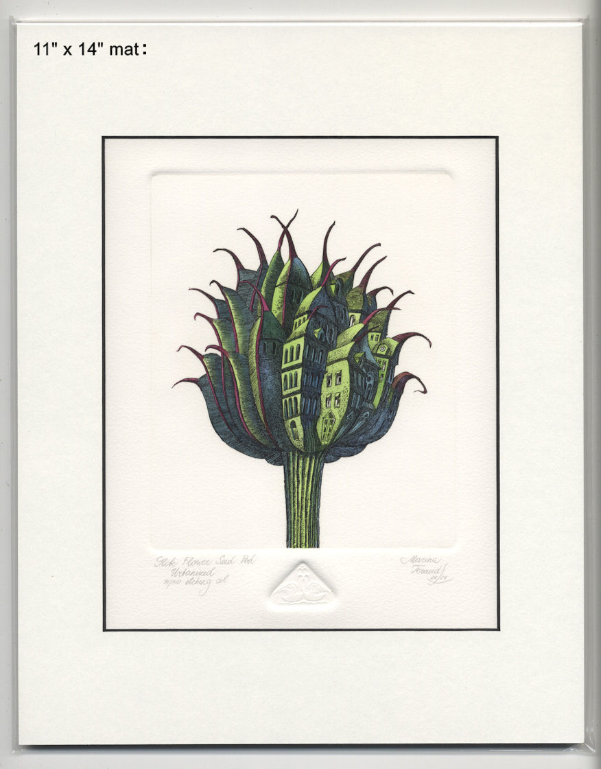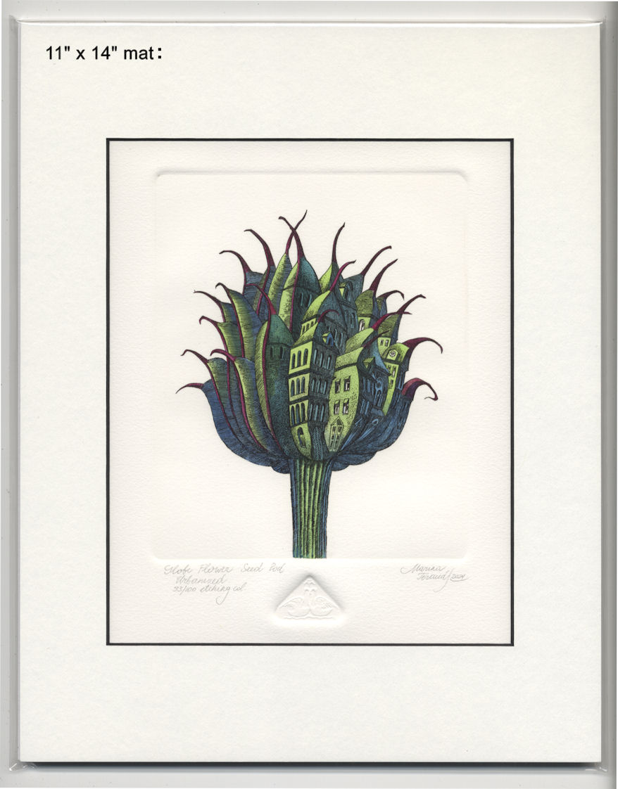 Globe Flower Seed Pod Urbanized, original etchings |