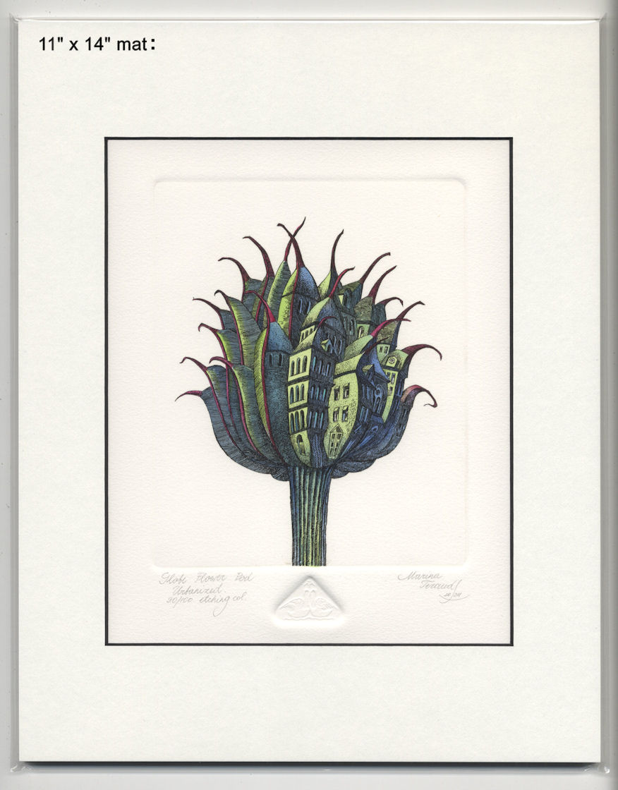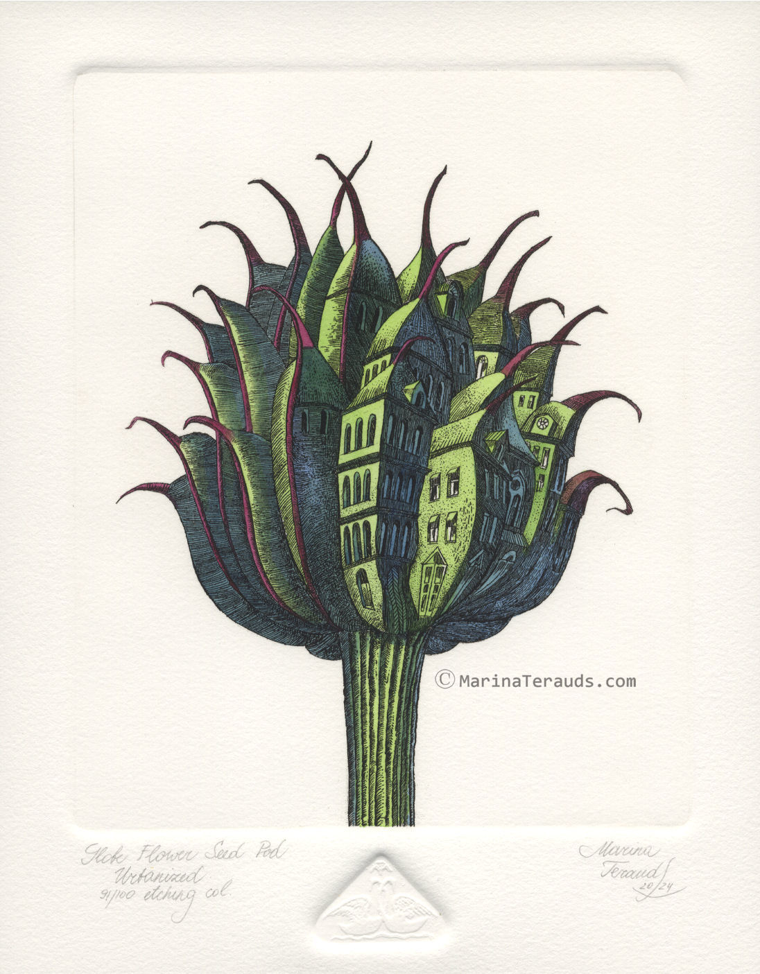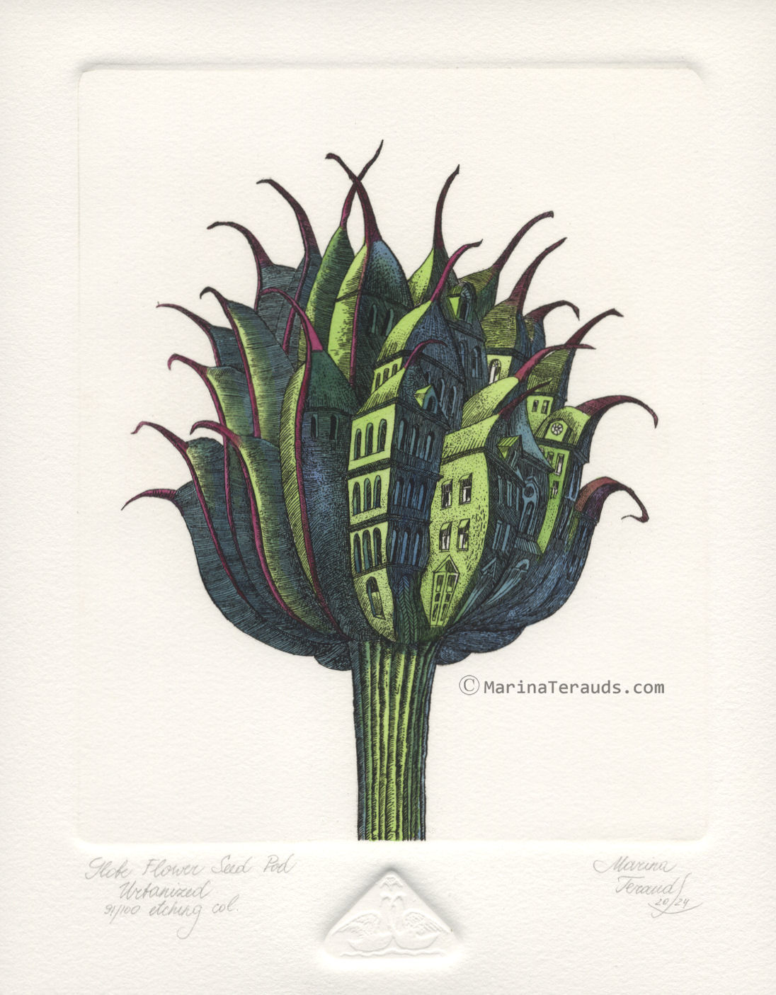 Globe Flower Seed Pod Urbanized, original etchings |