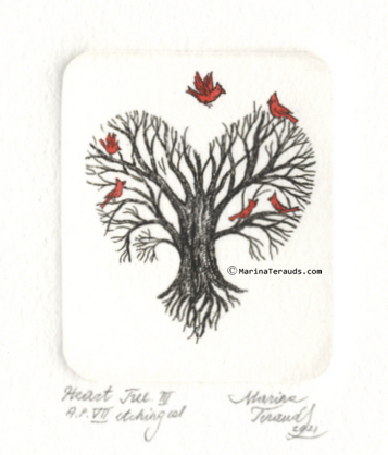 Heart Tree III, original etchings |