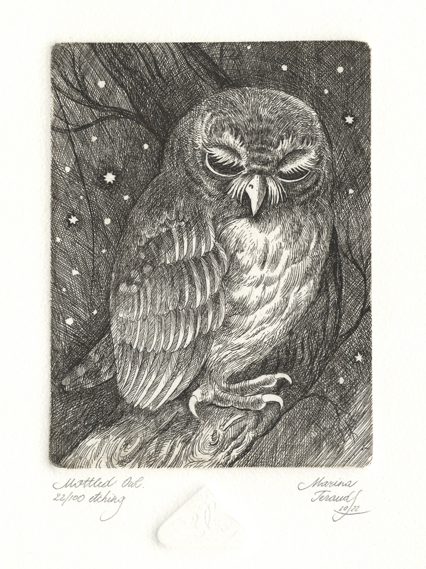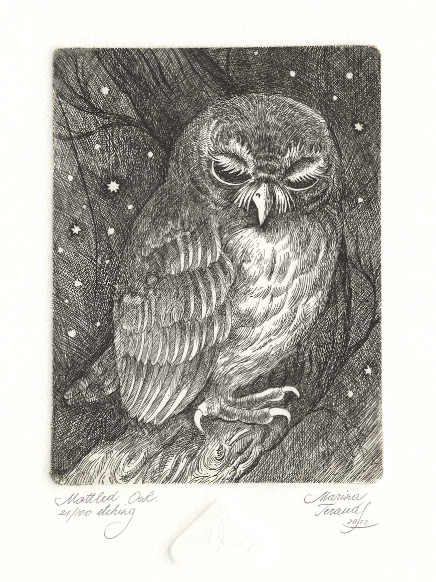 MOTTLED OWL, original etchings |