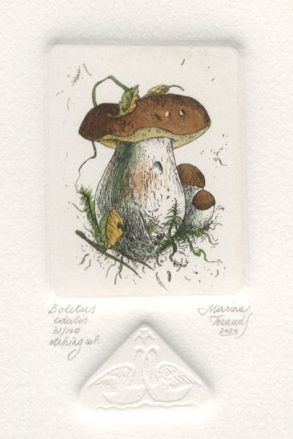 Boletus Edulis Mushroom, original etchings |