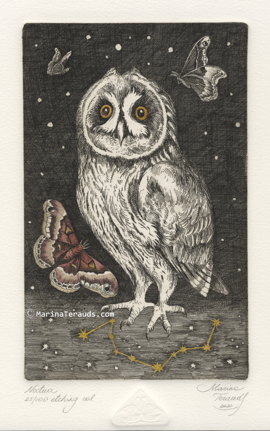Noctua (Latin: owl) was a short lived constellation in the Southern Hemisphere. It is no longer considered a proper constellation because it never had sufficient history. However the stars still remain there and the history behind the name Noctua reaches far back. More properly, Athene Noctua, got its name in Greek mythology by association with Athena, the goddess of wisdom. The speculation is that it is this bond that has lead to the owl being symbolic of knowledge, wisdom, and insightfulness. |