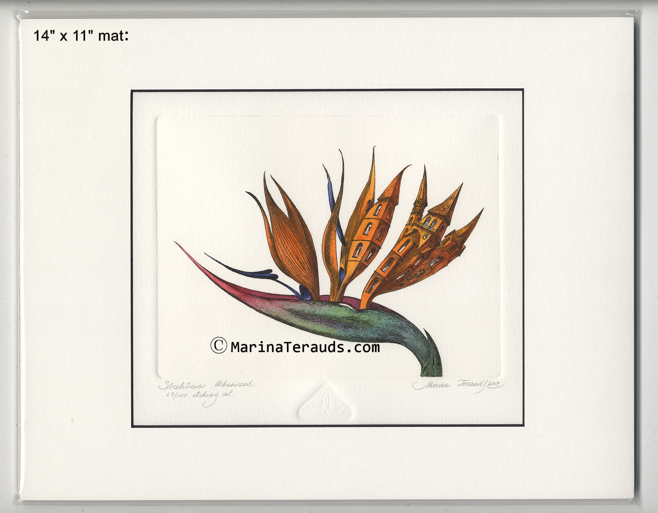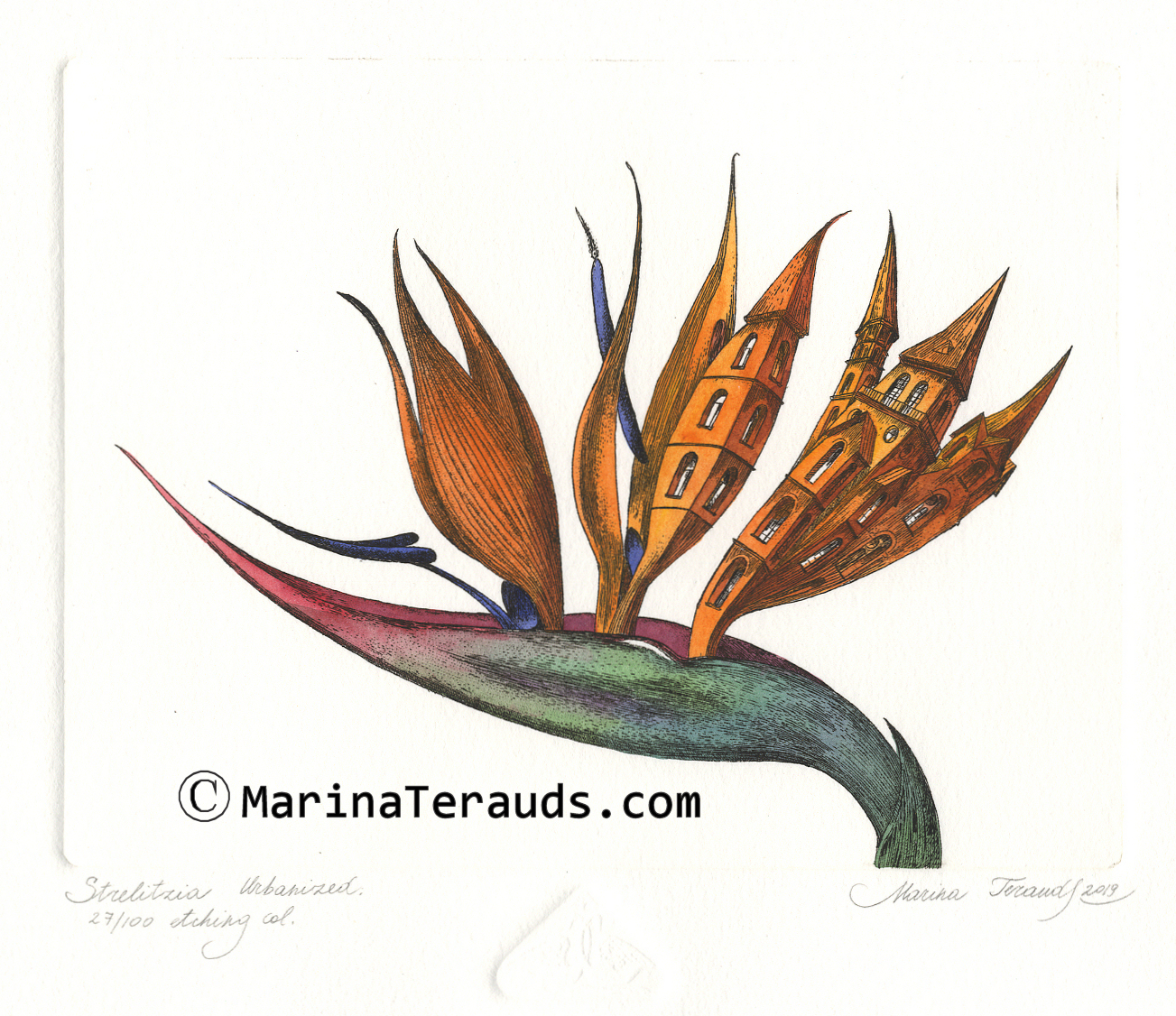 Strelitzia Urbanized, (Bird of Paradise Urbanized), original etchings |